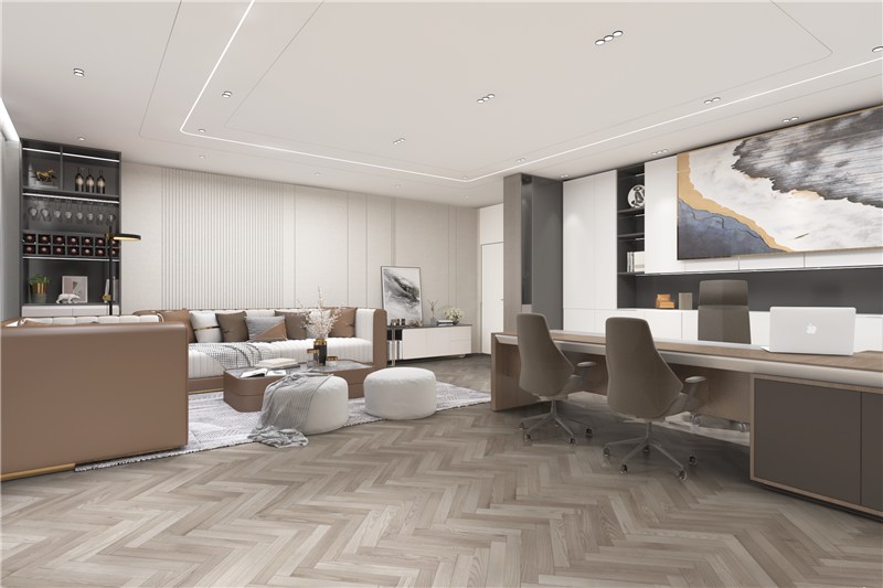 個人辦公室是相對獨立的空間,所以頂棚的燈光需求并不是很高,應(yīng)盡量采用令人舒適的自然光,如果自然光不夠充足,那么設(shè)計燈光時就要對工作面進行重點投光,其余部分進行輔助照明,這樣還能夠營造出一定的藝術(shù)氛圍。