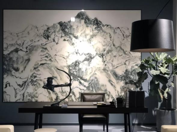 3、總經(jīng)理辦公室裝修,匠心獨(dú)具,辦公桌后的山水畫(huà)倚墻而立,成為整個(gè)房間的亮點(diǎn)所在,復(fù)古的潑墨大理石壁畫(huà),淡泊的寫(xiě)意感,氤氳肆意灑脫亦無(wú)重負(fù)的意境。白色的沙發(fā)與大理石圓桌相互配合,既保存了一以貫之的輕奢格調(diào),也不失商務(wù)談判應(yīng)有的沉穩(wěn)氣氛,并且充分保證了座位的充足。一對(duì)一的談判桌,配有相應(yīng)的茶具,滿(mǎn)足商務(wù)禮儀之需,也為整個(gè)空間增添了文化氣息。