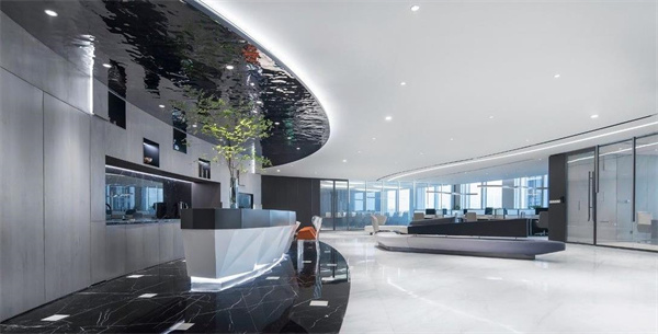 辦公空間本質(zhì)就是人在這個空間可以達成成就,在空間內(nèi)生活、工作時感到舒適與便捷更利于形成愉悅關(guān)系和情感,作為辦公室,商業(yè)禮儀尤為重要,主要是要讓來到這個空間的每一位客人都能感受到真誠,以動靜劃分每個區(qū)域,入口處就引入我們進入整個空間,背景的不銹鋼豎條透過不同角度排列形成像風(fēng)拂過的琴鍵變化,水吧的頂面、地面、墻面形成一個獨立區(qū)域,水吧的切面的造型呼應(yīng)大廈的建筑結(jié)構(gòu),軟硬裝相互搭配呼應(yīng),與大自然融為一體,會議室和獨立辦公室的隔斷裝修使用霧化玻璃,獨立和開放的功能自由切換。