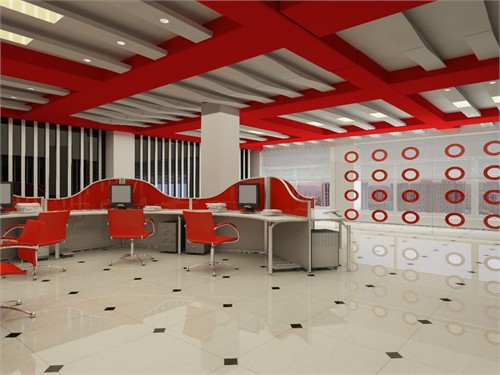 1、時(shí)尚服裝公司辦公室門廳裝修設(shè)計(jì):采用大紅色為主色調(diào)凸顯了服裝設(shè)計(jì)公司的一種很奔放的一種美感。前臺(tái)和休息區(qū)是一個(gè)整體的空間,利用展示架把它們成功的分成了兩個(gè)區(qū)域,互相獨(dú)立又協(xié)調(diào)統(tǒng)一。紅色的亞克力燈也是很搶眼具有一種很時(shí)尚現(xiàn)代的美感并且與會(huì)議室互相呼應(yīng)使整個(gè)設(shè)計(jì)做的比較整體。會(huì)議室的窗洞是采用像服裝樣式的異性口開洞凸顯了整個(gè)設(shè)計(jì)主題。辦公空間整個(gè)設(shè)計(jì)用簡(jiǎn)約的線條以及時(shí)尚的家具打造一種很熱烈奔放富有激情的公司氛圍。