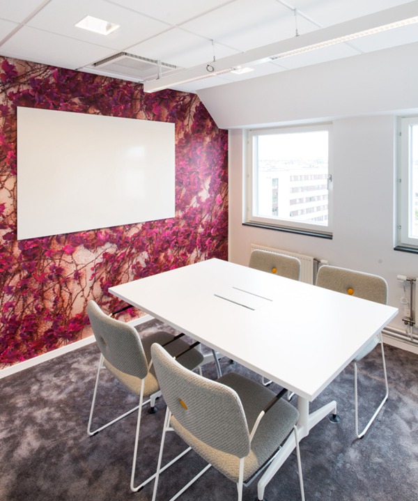 領(lǐng)企設(shè)計(jì)團(tuán)隊(duì)對(duì)原來的空間進(jìn)行了驚人的改造,煥然一新的辦公環(huán)境不僅現(xiàn)代感十足而且多姿多彩,舒適溫馨的氛圍充斥著家的感覺。室內(nèi)裝飾的亮點(diǎn)應(yīng)該是各種色彩的舒適地毯、休息椅、窗簾布藝和造型時(shí)尚的家具,在該項(xiàng)目中,設(shè)計(jì)師還加入了更為強(qiáng)烈的藝術(shù)元素,辦公室和會(huì)議室的墻壁上裝飾了插花圖案以模仿紋理效果和顏色組合。此外,在會(huì)議室的墻壁是模擬各種外墻效果,用瓷磚、馬賽克、玻璃磚或彩色玻璃演繹各種生活中常見的場(chǎng)景。