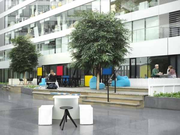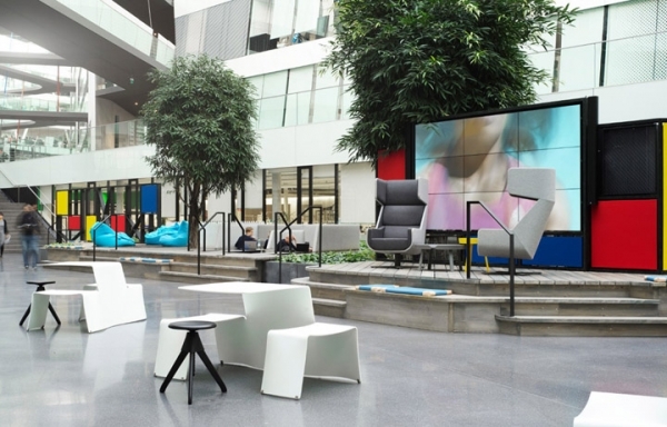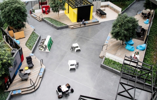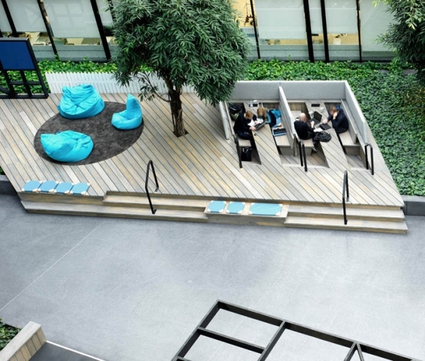 中庭空間通過自然溫馨的材質(zhì)、完全開敞的布局、以及充滿情感的人文設(shè)計,讓這處空間與理性的建筑構(gòu)造呈現(xiàn)出強烈的視覺反差,加入了時尚潮流的辦公設(shè)計元素讓這里華麗蛻變。
