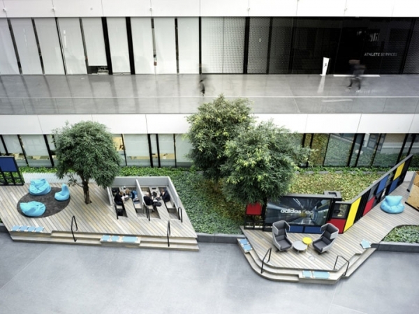 本色打磨的水泥地面、自然原色的木紋地板、大量的綠色植物,并注入契合品牌精神的時尚辦公理念,由此扭轉(zhuǎn)adidas品牌的傳統(tǒng)單一形象,塑造一個年輕、多元、時尚潮流的新形象。