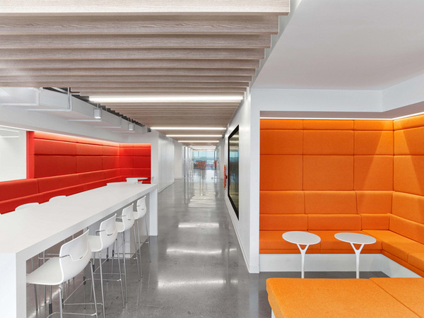 設(shè)計師根據(jù)企業(yè)特性打造了一個充滿動感、活力、趣味以及空間表現(xiàn)力的辦公空間。設(shè)計的關(guān)鍵元素包括盡可能擴大視野和戶外天光,讓領(lǐng)導(dǎo)層更通透可視。