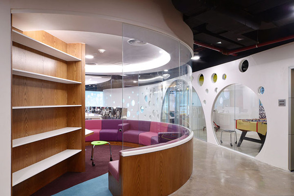 整個布局設計既能讓員工肩并肩工作與交流,同時又能滿足他們相對的獨立需求。員工區(qū)每個部門采用不同的色彩加以區(qū)分,定制設計的地毯也相應隨之變化。