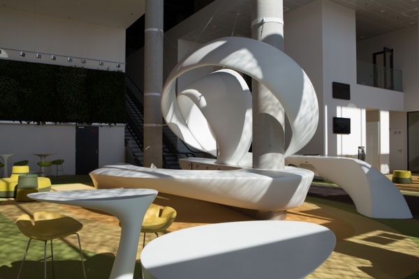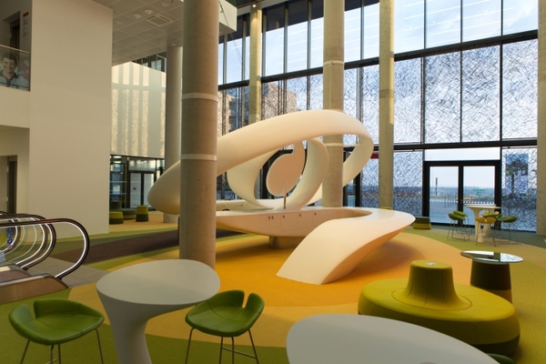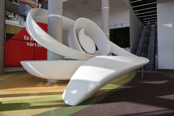 沃達豐公司期待的,是一個能夠展示出燦爛明天,并且能夠表明公司對未來前景信心的入口大廳。這個非同一般的大廳里,*引人注目的使那個三層樓高的藝術雕塑作品。