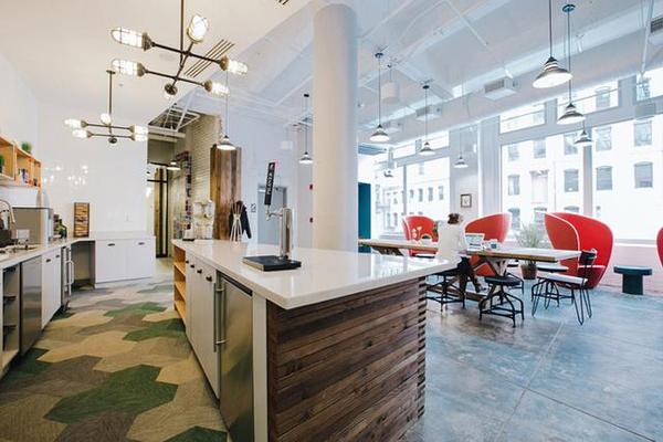 上海辦公室裝修設(shè)計(jì)公司-領(lǐng)企裝飾今天要與大家分享的是,美國波士頓WeWork的辦公室裝修設(shè)計(jì)。其辦公室自身散發(fā)著獨(dú)特的工業(yè)風(fēng)特質(zhì):高聳的梁架天花、堅(jiān)固的粗壯的柱子以及斑駁的水泥地面。WeWork占據(jù)這幢九層磚混建筑的五個(gè)樓層。巨大的玻璃外窗,讓陽光自由傾瀉入繽紛多彩的公共區(qū)域。位于后部的開放辦公區(qū),人們可以將塞岬海峽的美景一覽無余。地下室的休閑區(qū)類似一個(gè)運(yùn)動(dòng)吧,經(jīng)過一天的緊張工作,人們可以在此盡情放松享受快樂時(shí)光。