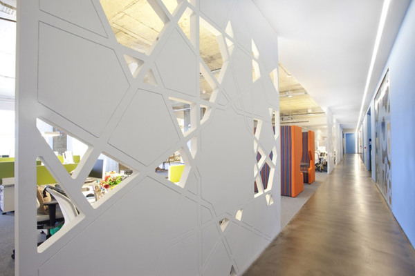 過道的設(shè)計,設(shè)計師在過道設(shè)計的時候,為了避免過道出現(xiàn)乏味的現(xiàn)象,特意采用了白色為主色調(diào),在隔斷的設(shè)計師采用了不規(guī)則的隔斷設(shè)計,讓過道一下變得精美起來。