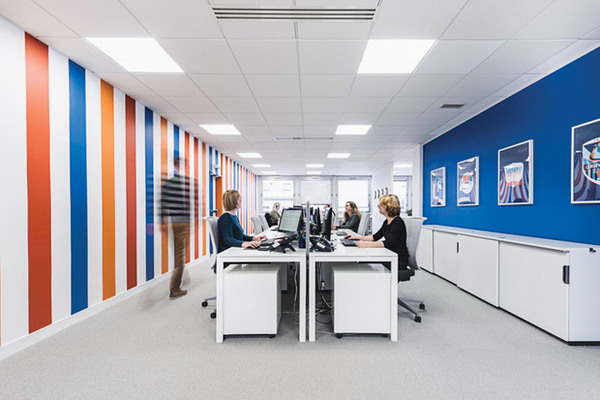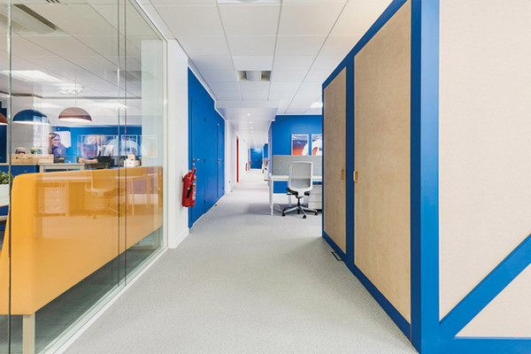 電子商務(wù)公司辦公室的品牌標(biāo)志多與顏色有所關(guān)聯(lián),在辦公區(qū)域設(shè)計(jì)的時(shí)候,設(shè)計(jì)師采用了由淺至深的顏色分布,表現(xiàn)企業(yè)的陽光積極,這也表現(xiàn)電子商務(wù)行業(yè)公司辦公室裝修的時(shí)尚元素。