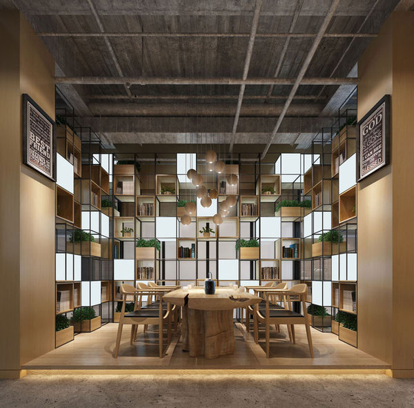 洽談區(qū)域的設計,設計師特意設計成綠意空間,設計師認為人們往往遠離大自然,因此需要在空間中多增添一些綠色,雖然面積有限,但能給交談提供一個很好的洽談環(huán)境。