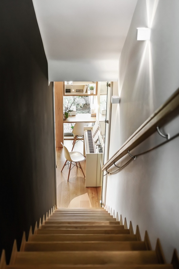 設(shè)計(jì)團(tuán)隊(duì)盡可能充分的利用空間的每一角落,在玻璃落地窗邊,定制出簡(jiǎn)易實(shí)用的工作區(qū)域,練琴房也擺放于此,讓陽(yáng)光、美景、伴隨著每天的工作時(shí)光。