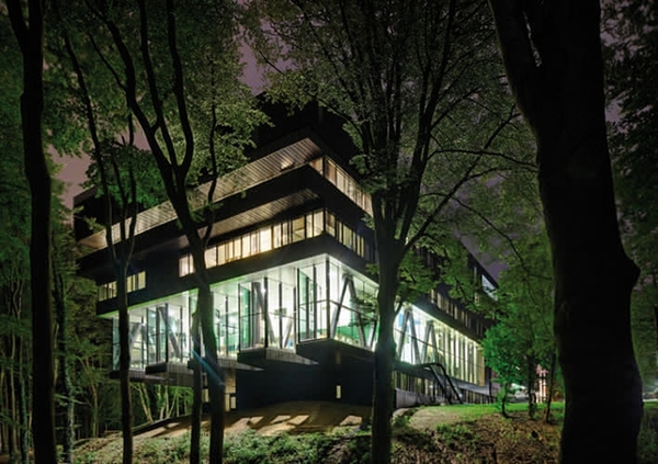 荷蘭的格魯特-克里蒙達(dá)爾康復(fù)中心,座落于東部的一片森林之中,環(huán)境非常幽靜。在設(shè)計上,這家醫(yī)院主要采用古銅色鋁板和玻璃。這一設(shè)計背后的想法是,投入大自然的擁抱有利于患者的治療。