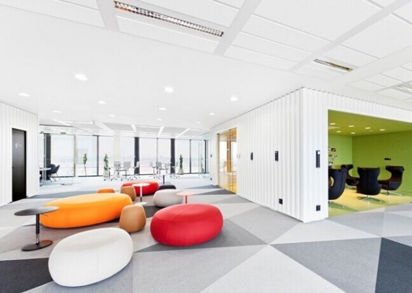 在Prague 辦公區(qū),我們會(huì)發(fā)現(xiàn)這里有一個(gè)私人的餐廳(其所需要的運(yùn)營成本,員工的花費(fèi)由公司負(fù)責(zé)),共設(shè)計(jì)有七層空間,修建了健身房、商店、錄音棚、游戲室、電影院、高爾夫球模擬器、圖書室、布置有吊床和遮陽傘的休息室。對于辦公區(qū)域而言,沒有標(biāo)準(zhǔn)化的建筑元素。