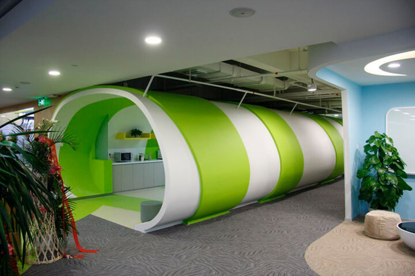 辦公室休息區(qū)和茶水間再次用它們?cè)煨酮?dú)特的辦公室裝修設(shè)計(jì)來突出“360綠”在整個(gè)品牌甚至企業(yè)滲透到細(xì)節(jié)的滲入影響,在讓員工耳目一新、眼前一亮的同時(shí),跟*近的新聞?lì)^條也很應(yīng)景呢。