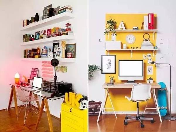 如果家里沒有專門的房間做office的話,在臥室或是客廳的一角也不錯哦~這樣不但能合理利用空間,還能讓你松弛得當,勞逸結(jié)合。