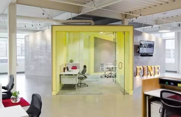 公司要求新的辦公空間是開放式的,并且給人輕松的感覺。設(shè)計(jì)師利用輕快的色彩搭配,營造了空間的整體氛圍。辦公空間中劃分出會議室、辦公區(qū)、餐廳、休閑區(qū)等。浮在空間和房屋兩個(gè)辦事處和代理機(jī)構(gòu)的會議室。谷倉的復(fù)雜形狀創(chuàng)建不同的程序區(qū)外,臺球區(qū)的機(jī)會是庇護(hù)一方而團(tuán)隊(duì)的工作空間面對廚房和開放的工作站。
