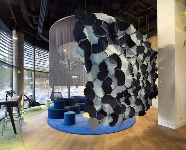 為了滿足多種用途,設計師在大廳里構(gòu)建了一個多功能的空間,人們可以根據(jù)需要巧妙的改變布局規(guī)劃,而且這個地方無論是從視覺或聲學角度都具有一定的隱密性,再加上那些可移動的裝修元素,使得人們可以在不破壞天花板或者地板的情況下,在視覺上享受到空間的連續(xù)性。