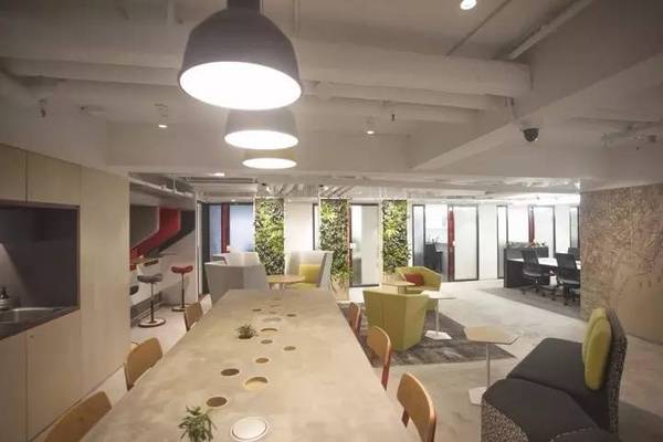 這是一間聯(lián)合辦公室,是一種為降低辦公室租賃成本而進(jìn)行共享辦公空間的辦公模式,來自不同公司的個人在聯(lián)合辦公空間中共同工作。在這個項目上,設(shè)計師試圖改變?nèi)藗儗ΤR?guī)協(xié)作辦公空間的一貫看法。他們打造出了靈活多變的工作區(qū)域,以滿足協(xié)同辦公的人們所需要的不同工作模式,可以適用于多種辦公類型。為了**限度的挖掘人與人之間交流的欲望,他們還專門設(shè)計了一個用于群聚的咖啡間??紤]到或許有人會需要一些相對獨立隱秘的辦公區(qū),設(shè)計師還在辦公室四周開闊的區(qū)域里,規(guī)劃出了幾間陳設(shè)簡單的小辦公間。