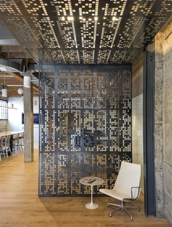 從天花板延伸下來的整體一致的隔斷,金屬制的外觀也很好地呼應了室內(nèi)工業(yè)化的風格。