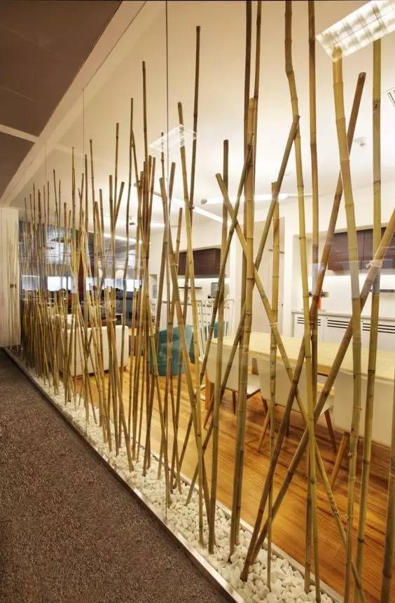 竹竿做的隔斷,稀疏的線條,讓光線在室內(nèi)自由流通,不會有實墻的那種壓抑感。