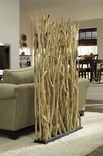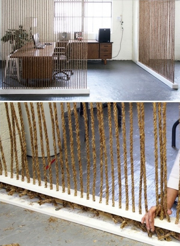 用線繩跟木板,相當容易的DIY別致隔斷,在材質(zhì)上追求自然,出來的空間效果也令人印象深刻。