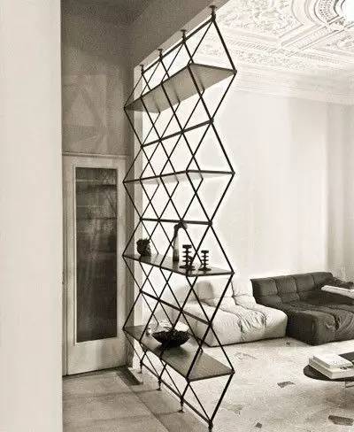 不同材質(zhì)的混搭不僅提供了隔斷,又能起到儲藏和展示的功能。