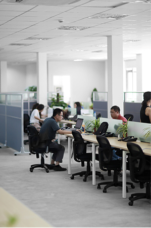 辦公區(qū)域的設計是整個公司里*為自由的區(qū)域,工位連成一片但是距離的保持并不會讓人覺得狹窄擁擠,沒有過分拘束的辦公氛圍讓員工大可以卸下緊張情緒,輕松辦公。綠色植物盆栽在室內隨處可見,飛拓企業(yè)對于裝飾及綠化的重視程度可見一斑。