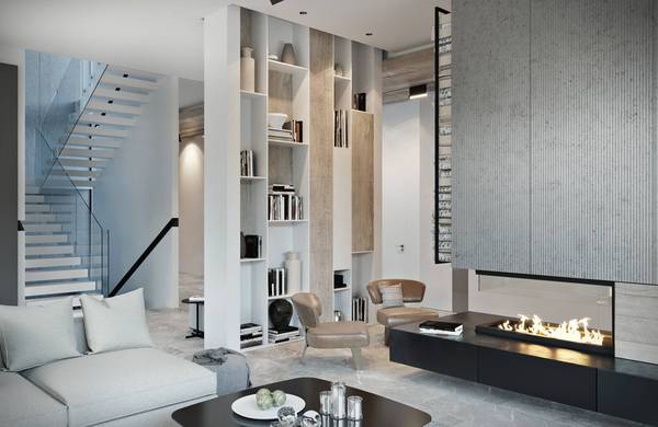 這個現(xiàn)代化的室內(nèi)是為離莫斯科不遠(yuǎn)的私人住宅而建的。使用簡單廉價的材料和一些昂貴的家具,但取得了良好的效果。