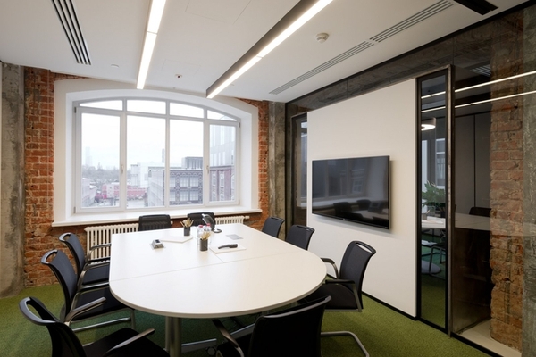 會(huì)議室設(shè)計(jì)可以根據(jù)對(duì)內(nèi)或?qū)ν獠煌枨筮M(jìn)行平面位置分布。按照人數(shù)則可分為大會(huì)議室、中型會(huì)議室和小會(huì)議室。常規(guī)以會(huì)議桌為核心的會(huì)議室人均額定面積為0.8平,無會(huì)議桌或者課堂式座位排列的會(huì)議空間中人均所占面積應(yīng)為1.8平。會(huì)議室兼顧了對(duì)外與客戶溝通和對(duì)內(nèi)召開機(jī)構(gòu)大型會(huì)議雙重功能,基本配置有投影屏幕、寫字板、儲(chǔ)藏柜、遮光等。在強(qiáng)弱電設(shè)計(jì)上,地面及墻面應(yīng)預(yù)留足夠數(shù)量的插座、網(wǎng)線;燈光應(yīng)分路控制或?yàn)榭烧{(diào)節(jié)光。根據(jù)客戶的要求考慮應(yīng)設(shè)麥克風(fēng)、視頻會(huì)議系統(tǒng)等特殊功能。