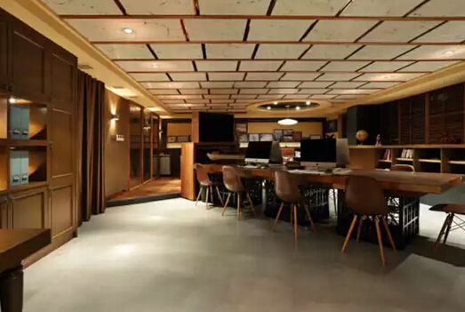 創(chuàng)意辦公室裝修,*主要的是與眾不同的體現(xiàn),進(jìn)入辦公室給人一種眼前一亮的感覺(jué)??紤]到陽(yáng)光朝向?qū)k公環(huán)境的影響,室內(nèi)桌子和電腦顯示器遮蔽在靠南的陰影下,另一側(cè)的墻壁擺放各種物件,亂中有序。設(shè)計(jì)師特別通過(guò)色彩對(duì)透明開放和封閉的兩部分進(jìn)行對(duì)比,室內(nèi)加上明快的顏色,白色、黃色、綠色。透明弧形窗的部分,其室內(nèi)的地面和墻面是鮮亮的黃色與綠色,與室外的色彩一致,生機(jī)勃勃。