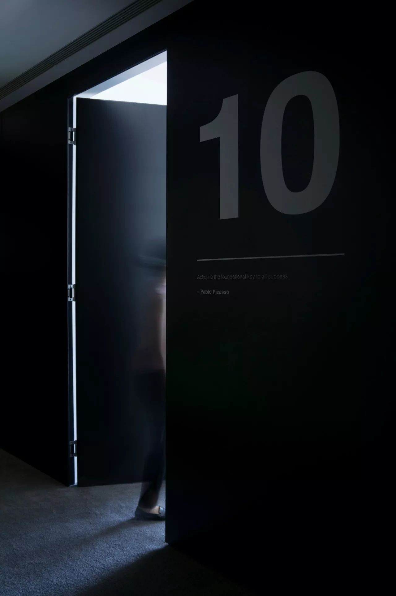 會(huì)務(wù)中心層的發(fā)光玻璃墻,滿足了整個(gè)空間的照明,同時(shí)又成為空間的視覺核心,營造出純粹、安靜、脫俗的藝術(shù)辦公空間氛圍。