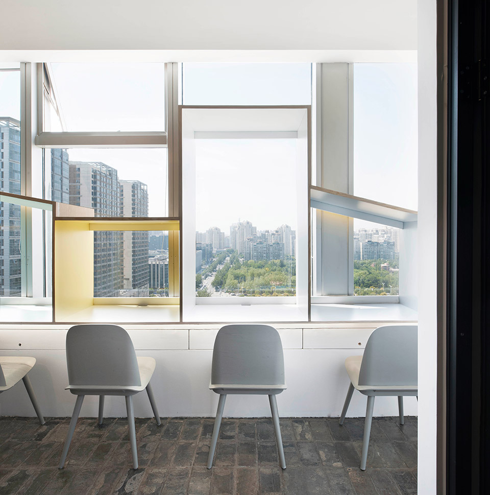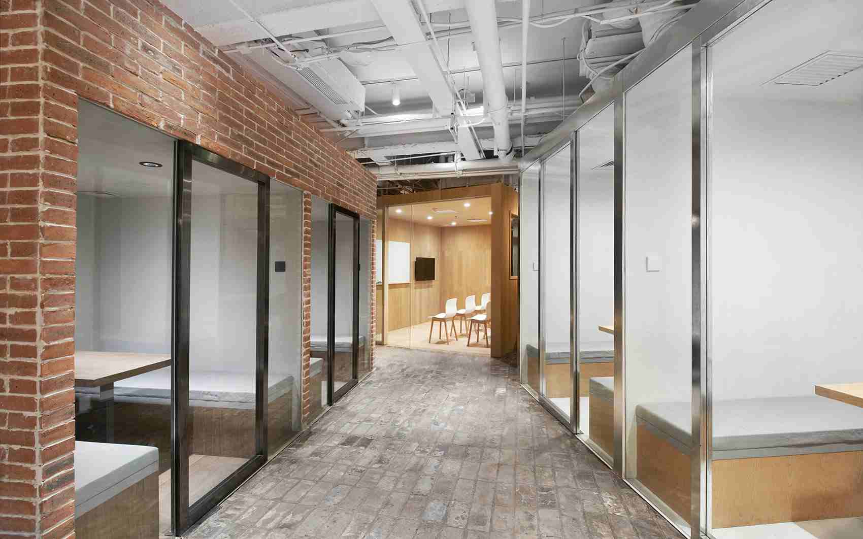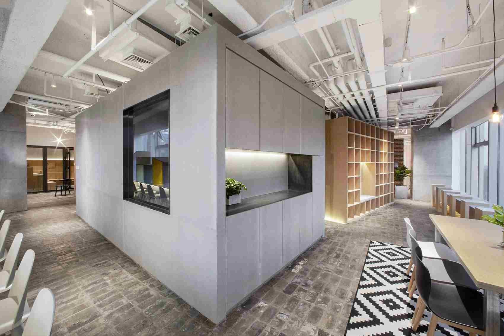 項目位于一座辦公樓內(nèi),業(yè)主租賃三個房間作為學(xué)校的辦公和培訓(xùn)區(qū)域。為了整合全部的空間的使用,設(shè)計師將其打通成為一整個房間。