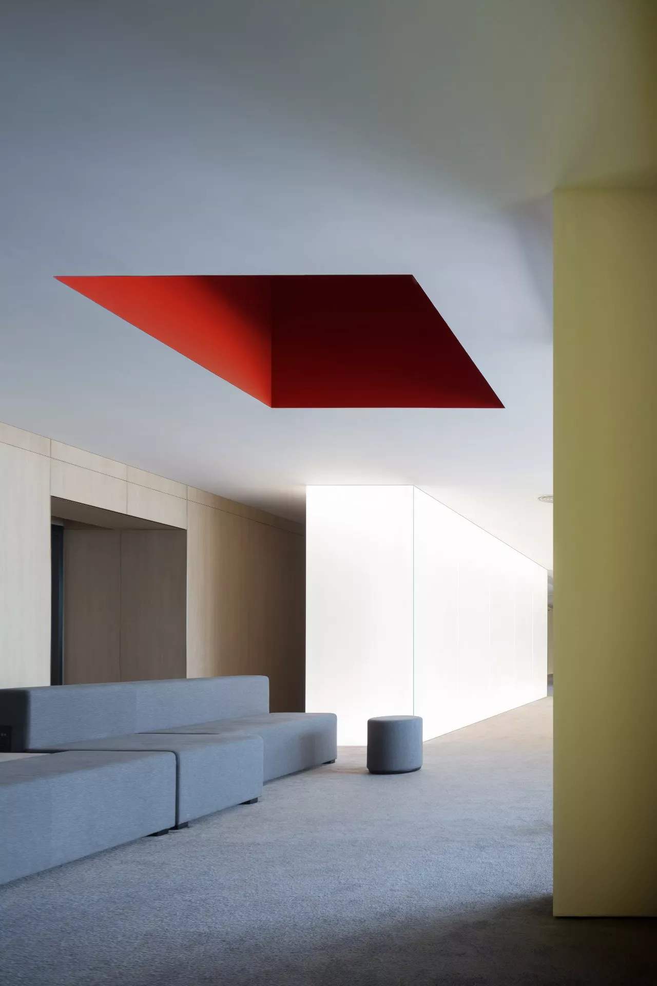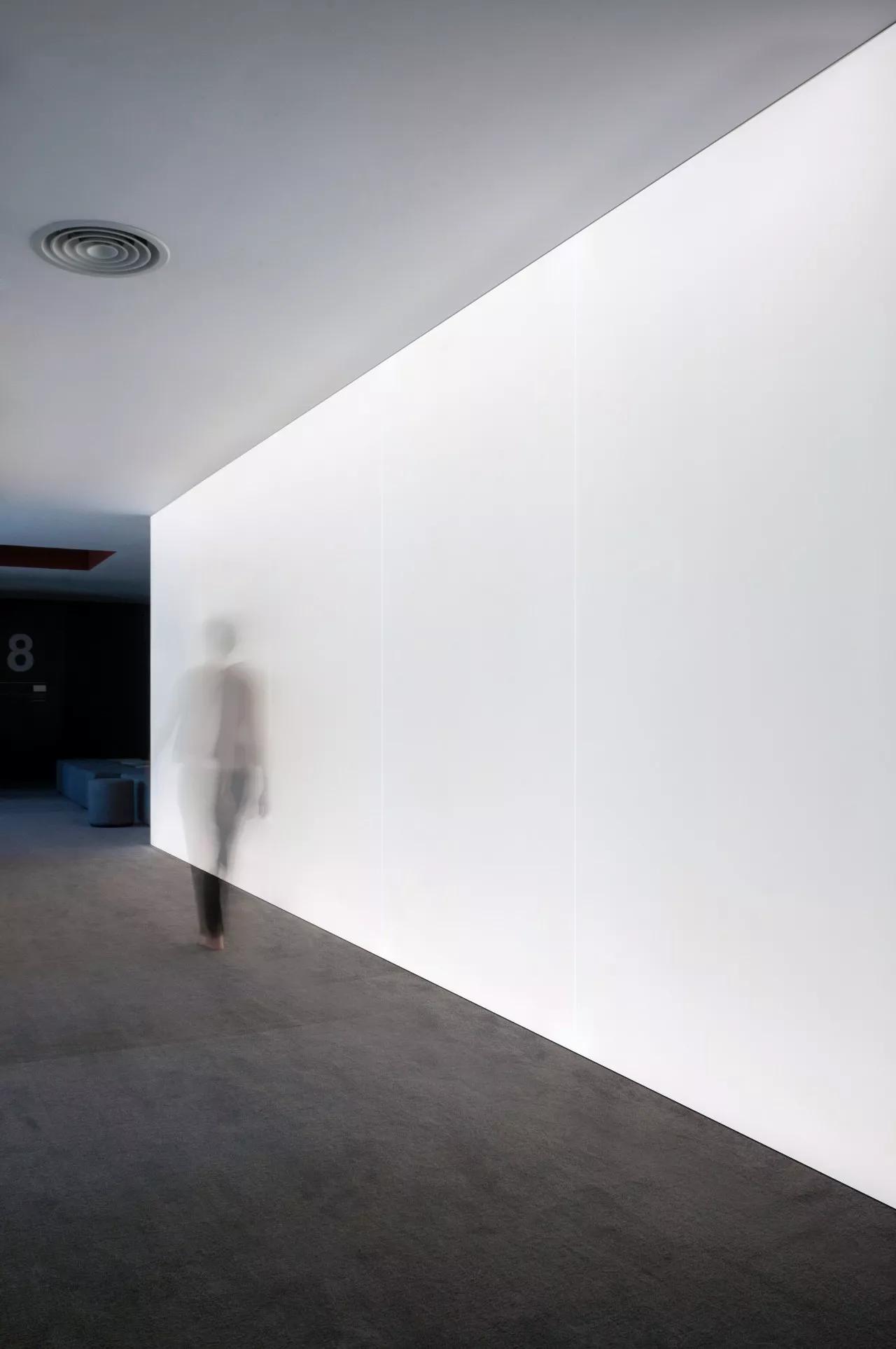 ![]() 中原地產(chǎn)在深圳經(jīng)過(guò)二十年的深耕,目前區(qū)域員工達(dá)到11000多人,是深圳規(guī)模**的專(zhuān)業(yè)地產(chǎn)代理公司。Peng & Partners (P&P)為其位于深圳后海的新總部辦公空間進(jìn)行了大刀闊斧、革命性的設(shè)計(jì)。 ?作為一家港資企業(yè),其過(guò)去20年的發(fā)展中,一直秉承著拼搏進(jìn)取、專(zhuān)業(yè)嚴(yán)謹(jǐn)?shù)南愀劬?,這也反映在老的辦公空間的形象上。在當(dāng)下的重要時(shí)間節(jié)點(diǎn),企業(yè)希望融合深圳大膽創(chuàng)新的精神,活力、開(kāi)放與協(xié)作。 ![]() 整個(gè)項(xiàng)目包含建筑的四層樓,三層為辦公樓層,另一層為會(huì)務(wù)中心層。 大廳天花頂部的開(kāi)孔與立面的開(kāi)孔相呼應(yīng),呈現(xiàn)豐富而有趣的空間構(gòu)成和層次的延伸感。 ![]() ![]() “盒子”的概念貫穿整個(gè)設(shè)計(jì),通過(guò)相減、擠壓、鑲嵌、堆疊等, 對(duì)基礎(chǔ)的方塊進(jìn)行加工變形,產(chǎn)生不同的正相和負(fù)相空間,以不同組合方式,串聯(lián)起來(lái)。盒子的不同開(kāi)口方向和尺度,呈現(xiàn)出有趣的對(duì)比關(guān)系和節(jié)奏:私密與開(kāi)放、狹窄與舒張、幽暗與明亮… ![]() ![]() ![]() ![]() 每個(gè)單獨(dú)的盒子,被賦予簡(jiǎn)單純粹的色彩和材質(zhì),比如包裹墻面和天花的彩色吸音毛氈,有效降低與其他區(qū)域的相互干擾,實(shí)現(xiàn)**的聲學(xué)效果。人在里面活動(dòng)時(shí),空間和人的關(guān)系,以及人與人的關(guān)系變得更緊密而有趣,同時(shí)獲得一種沉浸式的空間體驗(yàn),使討論或工作變的更放松和專(zhuān)注。 ![]() ![]() ![]() 為了弱化傳統(tǒng)辦公室的緊張氛圍,公共休閑區(qū)配置了特別大的面積,包括大面積的垂直綠化墻、廚房及水吧。成為員工聚會(huì)、休息,或工作交流、頭腦風(fēng)暴的聚集地。模塊化的沙發(fā),能實(shí)現(xiàn)多變的組合方式,以及滿足員工360度全方位的無(wú)障礙溝通。 ![]() ![]() 9㎡部門(mén)經(jīng)理辦公室,在功能布置上做了很大的改變和創(chuàng)新,所有的功能構(gòu)件沿著空間四周墻面布置,儲(chǔ)物、辦公、休閑、閱讀及交流等,非常巧妙的銜接,使得小面積卻擁有寬敞舒適之感。 ![]() ![]() ![]() 會(huì)務(wù)中心層的發(fā)光玻璃墻,滿足了整個(gè)空間的照明,同時(shí)又成為空間的視覺(jué)核心,營(yíng)造出純粹、安靜、脫俗的藝術(shù)辦公空間氛圍。 ![]() ![]() ![]() ![]() ![]() ![]() ![]() ![]() 整體空間的人流動(dòng)線簡(jiǎn)潔清晰,工作交流快速**。 ![]() ![]() ![]() ![]() ![]() 空間的平面指示系統(tǒng)設(shè)計(jì),結(jié)合簡(jiǎn)潔的造型體塊、線條和光線,呈現(xiàn)出耳目一新、時(shí)尚優(yōu)雅的氣質(zhì)。 ![]() ![]() 整個(gè)設(shè)計(jì)過(guò)程中,都在嘗試對(duì)傳統(tǒng)的辦公方式帶來(lái)改變,創(chuàng)造一個(gè)嶄新愉悅的工作體驗(yàn)。 ![]() ![]() ![]() ![]() 平面規(guī)劃: 依據(jù)場(chǎng)地的條件,以及體現(xiàn)企業(yè)文化和對(duì)員工的關(guān)懷,優(yōu)先保證各個(gè)部門(mén)擁有*有利的采光、通風(fēng)和*佳的景觀視野,員工辦公區(qū)域設(shè)置在靠窗的位置,部門(mén)參照柱位劃分。其余的功能區(qū)塊,如儲(chǔ)物、洽談區(qū)、影印室以及電話亭等,沿建筑核心筒集中排列。 ![]() |