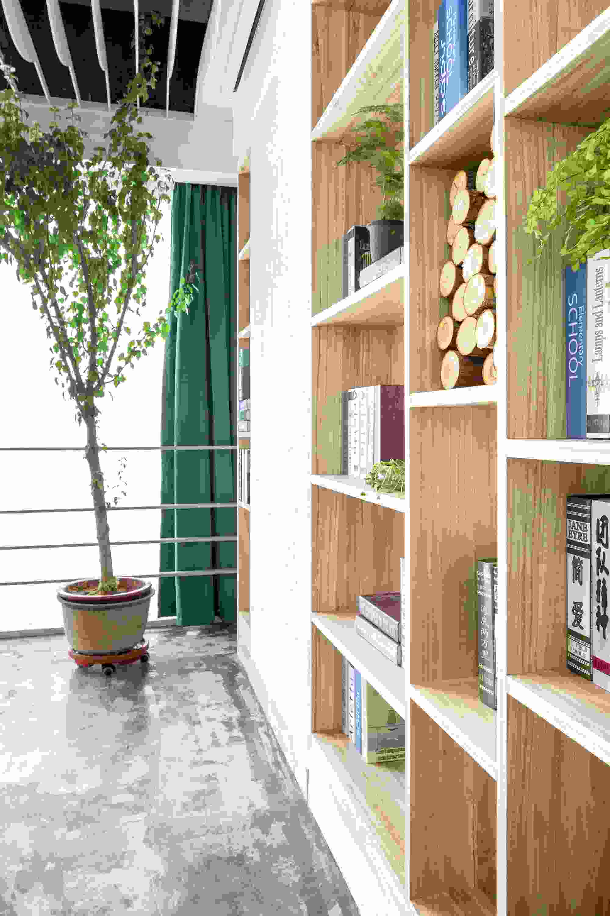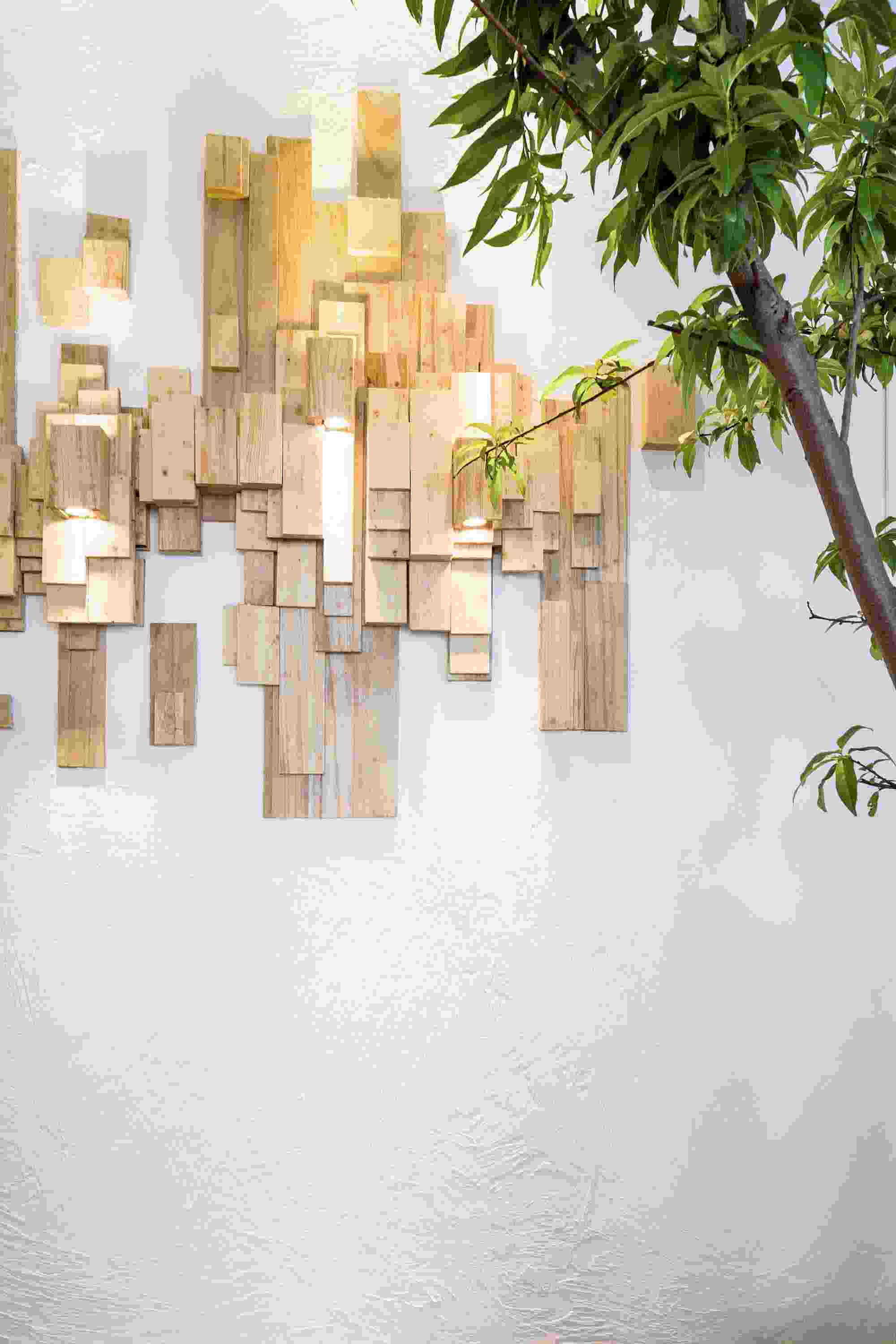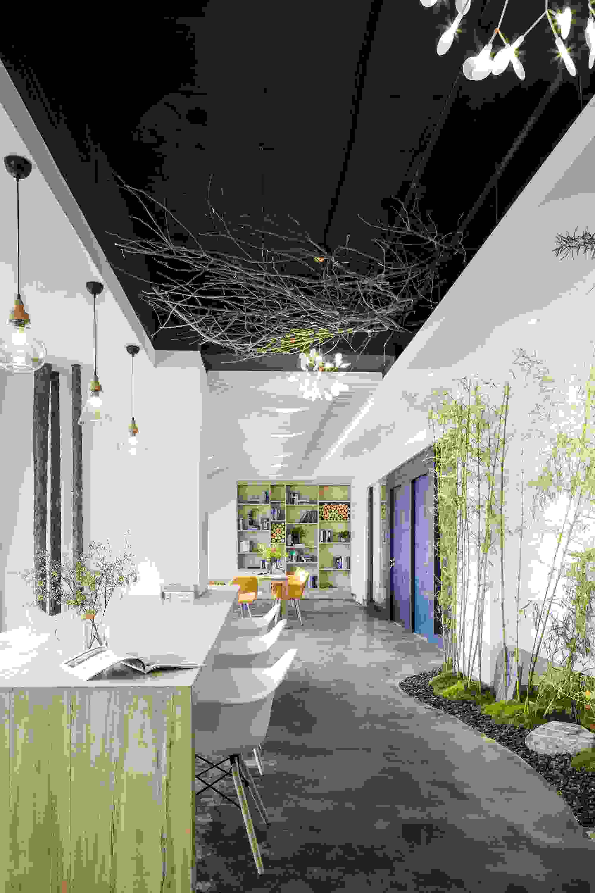 東方的美學(xué)向來是含蓄溫婉的,LOGO墻處的玻璃透景配合自然的竹石,隨著太陽的變化,光影也在不斷的變化,猶如人生。在材料的運(yùn)用上選用的都是一些環(huán)保低碳的天然材料,如樹枝、石竹、枯木、天然原木板,地面則是采用了水泥自流平的方式。