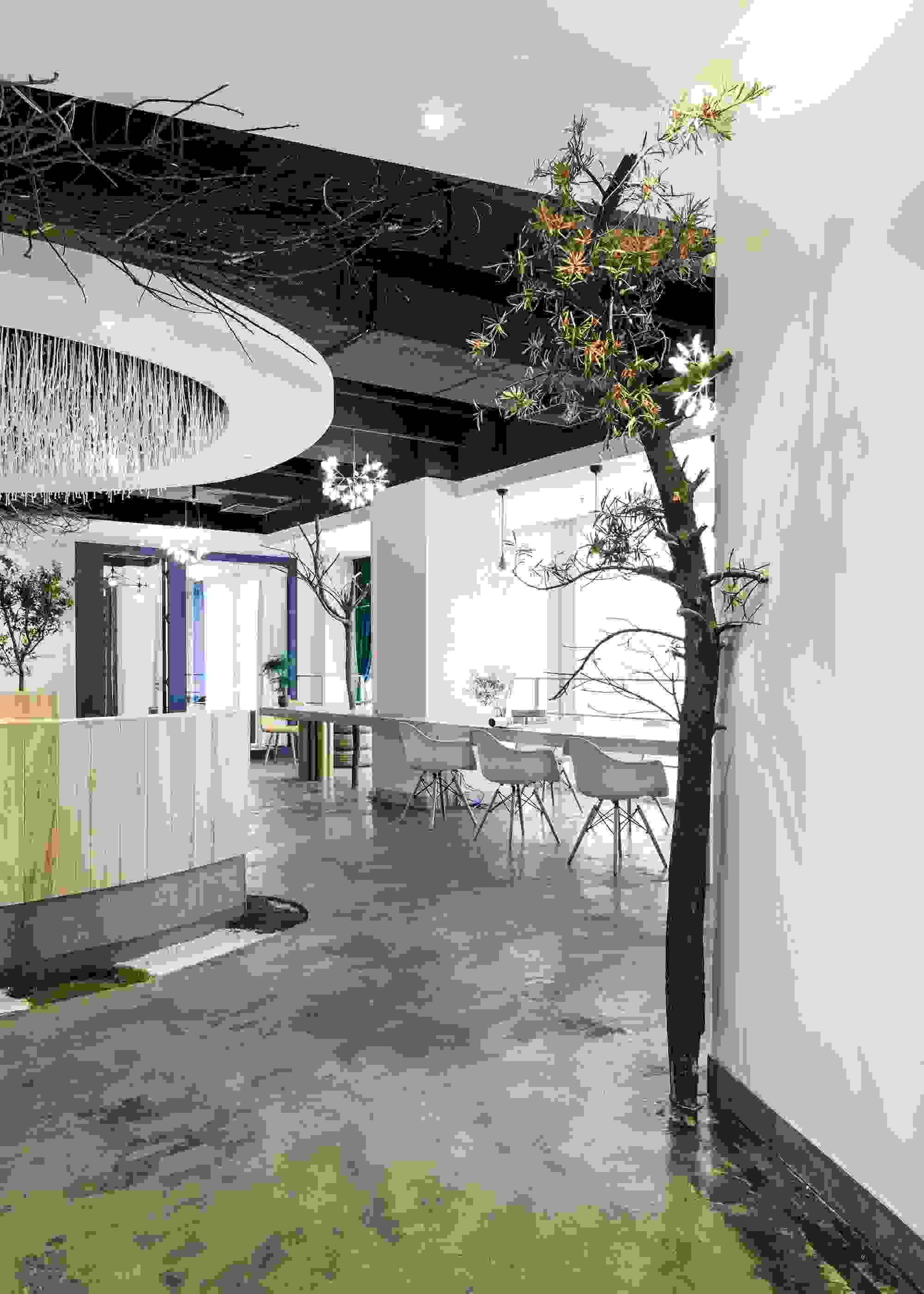 ?本案是中國鄭州的一間辦公室,設(shè)計(jì)摒棄了傳統(tǒng)辦公室的嚴(yán)肅緊張的氣息,而是傳達(dá)一種東方自然的感受。中國人說無規(guī)矩不成方圓,可又說上善若水。規(guī)矩不可無,但規(guī)矩也可以像水一般的柔順,高境界的善行就像水的品性一樣,澤被萬物而不爭名利。辦公室不僅僅只是工作的地方,它還應(yīng)承載對(duì)人生的理解和期望。
