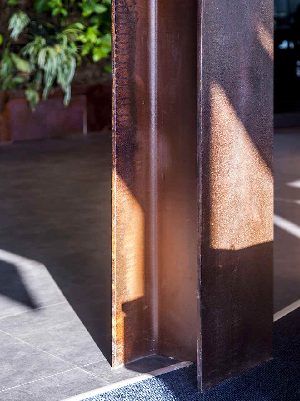 這種理念扎根于每個細節(jié),貫穿了空間設(shè)計的始終。環(huán)形的空間格局帶來了不少挑戰(zhàn),而設(shè)計團隊僅有2個月的時間來解決所有問題。此外,業(yè)主還對空間的開放與通透性做出了明確的要求。而為了滿足業(yè)主的需求,設(shè)計團隊與施工單位Shin Angel合作,給出了針對性的技術(shù)解決方案,無論是開放式的聲音屏障,抑或14根銹蝕鋼梁的添加,都是針對設(shè)計需求量身定制的。