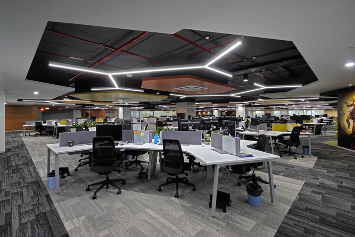 辦公區(qū)域作為公司中應(yīng)用范圍*廣的場所,涵蓋了公司所有部門,在照明要求下滿足舒適均勻的原則。照明應(yīng)結(jié)合事務(wù)行為以均勻性、舒適性為設(shè)計原則,通常采用均勻間隔配置燈具的方法,并結(jié)合地面功能區(qū)域采用相應(yīng)的燈具照明。 桌面區(qū)域采用網(wǎng)格盤,使作業(yè)空間光線均勻,減少眩光。 在集體辦公室的通道區(qū)域采用節(jié)能降光燈,為通道補充光線。