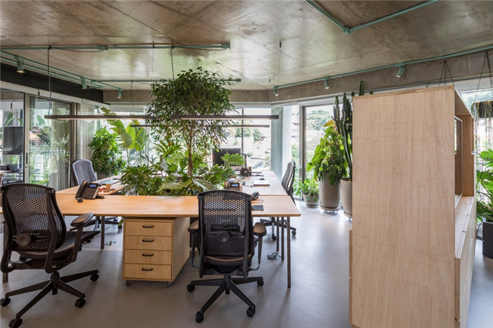 該案例選擇在辦公室裝修中選擇刷綠色或者木紋色的墻漆,這樣就仿佛身處大自然的綠色之中,頓時就感覺身心舒適了呢?選擇在辦公室裝修時擺放一些綠植,或者是墻體裝飾,或者是桌面裝飾,在提供綠色的同時也可以凈化空氣,豈不是一舉兩得。除此之外呢,設(shè)計師還在辦公室裝修時選擇綠色系的地毯,當然這里就要和自己辦公室裝修風格相一致,不然就會有失美觀。當然,如果你喜歡的話也可以選用一些類似森林中的草地般的地毯。鋪設(shè)了綠草一般的辦公室地面讓人有種想要坐下野餐的感覺,當然也不要忘了為辦公室的裝修風格要與之相對應(yīng)。這樣的辦公室設(shè)計簡直是讓人欲罷不能呢!