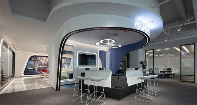 4、本案例的公司從事的是高科技行業(yè),甲方要求室內(nèi)的空間設(shè)計(jì)要具有未來(lái)的科技感。因此在500平辦公室裝修設(shè)計(jì)中,運(yùn)用了曲面弧形的流線(xiàn)型設(shè)計(jì),給人營(yíng)造了一種置身與太空艙的感覺(jué)。