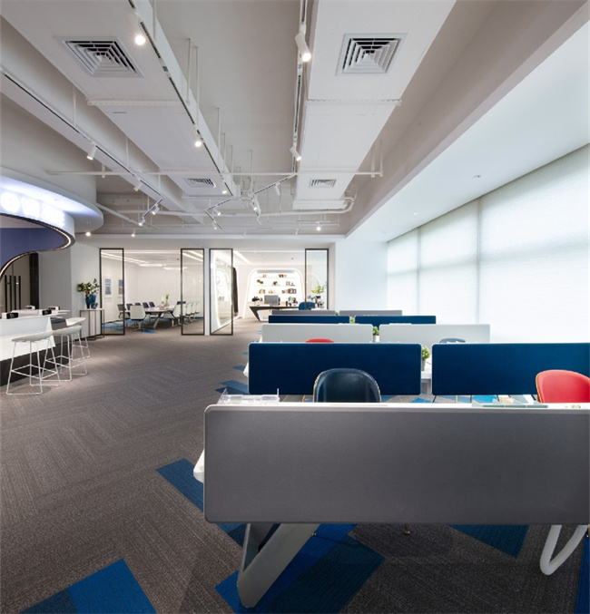 5、維盟科技辦公室裝修設(shè)計(jì),根據(jù)業(yè)方品牌定義發(fā)展需求,重新打造精品空間,白色為主色調(diào),空間明朗,黑藍(lán)為點(diǎn)綴配色襯托商務(wù)的穩(wěn)重和生命的科技感。