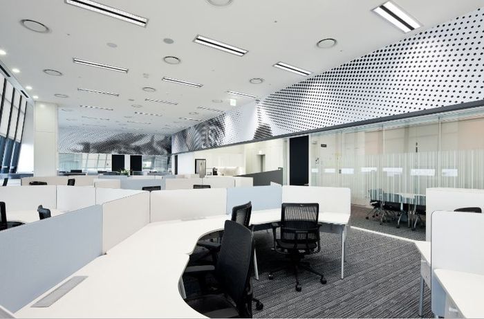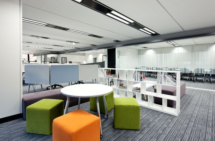 ? ? 德韋爾是一個(gè)工業(yè)材料集團(tuán)公司,化工和時(shí)尚。工作人員可以使用粉末室進(jìn)行頭腦風(fēng)暴和集中工作。辦公空間有不同的主題,根據(jù)他們所工作的品牌。在色彩和高對(duì)比度較強(qiáng)的線性設(shè)計(jì),前衛(wèi)的品牌形象是顯而易見(jiàn)的。