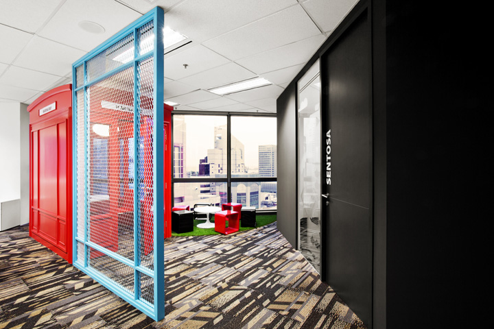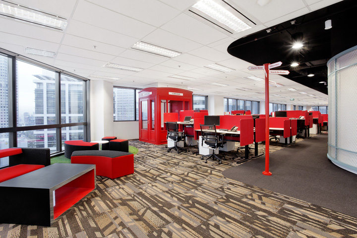 設(shè)計(jì)師依據(jù)“旅游”這個(gè)公司特質(zhì)將旅游的輕松感受應(yīng)用于辦公環(huán)境的設(shè)計(jì),為員工創(chuàng)造一種時(shí)刻在旅途中的新鮮感受,令每天的工作都充滿激情、新鮮與活力。設(shè)計(jì)采用折衷手法,將材料、家具、色彩混搭在一起,淺色橡木飾面與明亮的色彩帶來(lái)多姿多彩的旅游感受;多種開(kāi)放場(chǎng)景、裸露吊頂以及自然光線的運(yùn)用為員工呈現(xiàn)出一個(gè)活力與激情的辦公場(chǎng)所。室內(nèi)設(shè)計(jì)優(yōu)先考慮員工的工作感受,將工作區(qū)安排在玻璃窗附近,擁有開(kāi)敞的視野與自然天光;而將不需要光照的資料室放在中心位置也便于取閱。為了創(chuàng)建人在旅途的氛圍,室內(nèi)的通道也做了小小的設(shè)計(jì),比如路牌、廣告燈箱等會(huì)令人聯(lián)想到旅游中曾經(jīng)熟悉的場(chǎng)景。